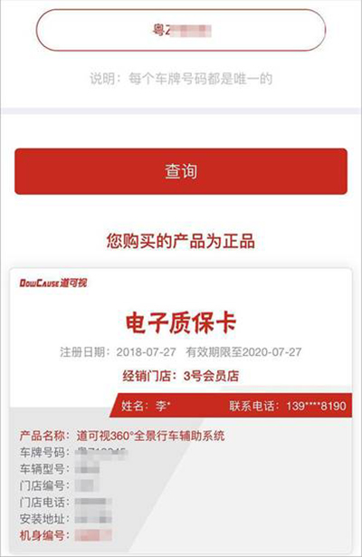 另外,在售后服務(wù)上,道可視還將為消費(fèi)者提供“電子質(zhì)?!と珖?guó)聯(lián)?!钡氖酆笳?,為消費(fèi)者生成提供一張售后“電子質(zhì)保卡”,讓消費(fèi)者售后無憂。