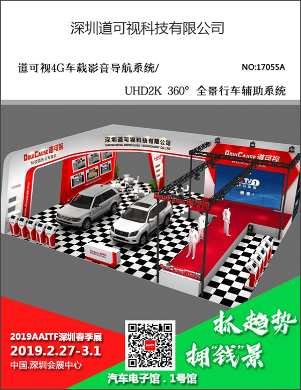 值此辭舊迎新、2019新年開春之際,道可視將攜旗下道可視4G車載影音導(dǎo)航系統(tǒng)、UHD2K 360°全景行車輔助系統(tǒng)等360°全景產(chǎn)品,參展將于2019年2月27日~3月1日,在深圳會(huì)展中心舉辦的2019AAITF深圳春季展?。ㄒ韵潞喎Q深圳春季展)
